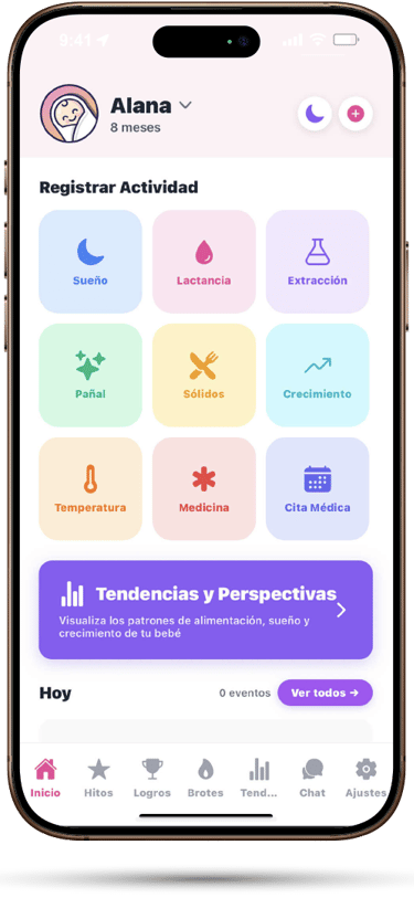 La aplicación esencial para registrar el sueño, la alimentación y los hitos de tu bebé en un solo lugar.