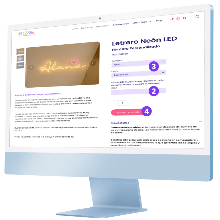 Al dar clic al botón confirmar diseño, se auto-copiará el resumen de tu diseño y te mandara a la pagina del producto, pega ("Control V" o con el clic derecho de tu mouse → pegar) el resumen en el campo "NOTAS DEL PEDIDO".